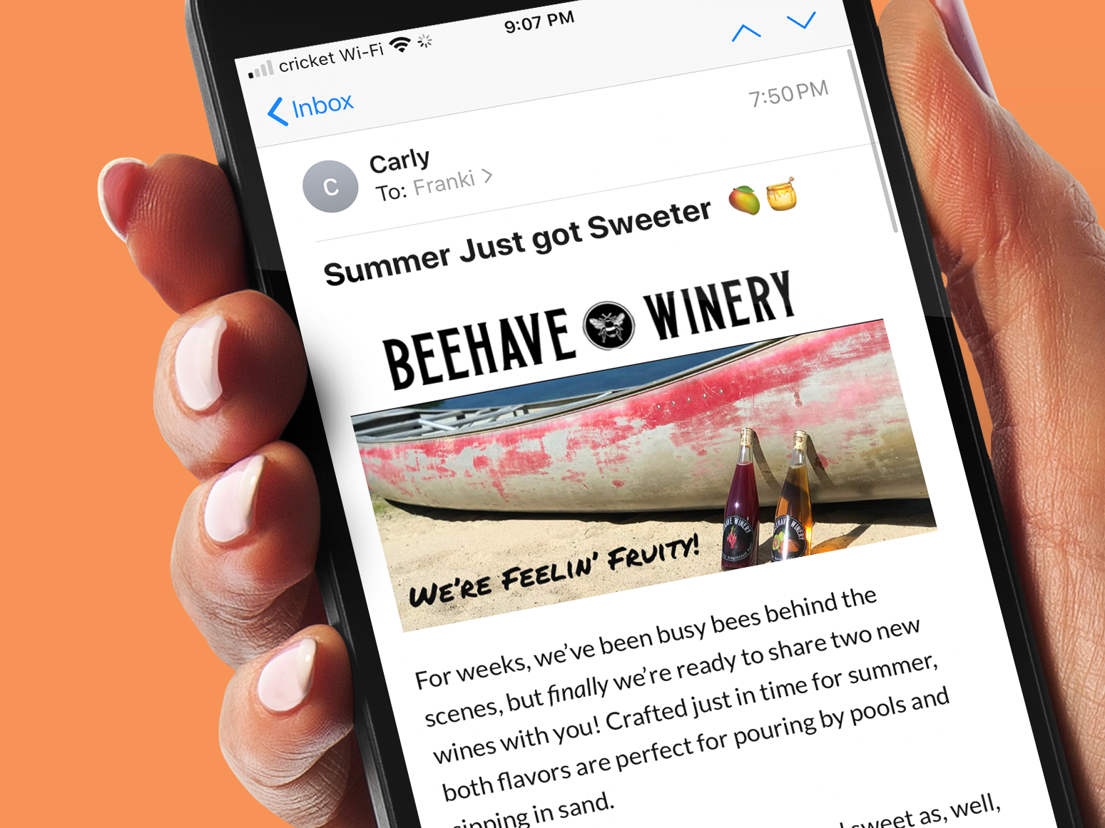 Beehave Winery started as the collaboration between two friends: a hobbyist wine maker and avid bee keeper. The combination birthed their fruity honey wines. They support their main workforce of Napa Valley hives by donating 5% of all profits back into local beekeeping ventures. To extend their branding and connect with their 1,000+ customer email list, they needed a copywriter and designer for their Mailchimp email campaigns.