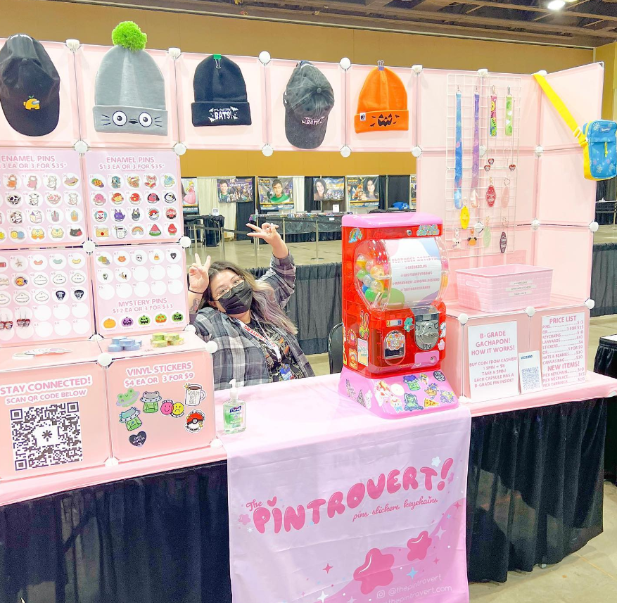 Ani Singh, the pintrovert, is an artist from Phoenix, Arizona producing enamel pins, stickers, and keychains inspired by pop culture. She sells both online and in conventions across the United States.